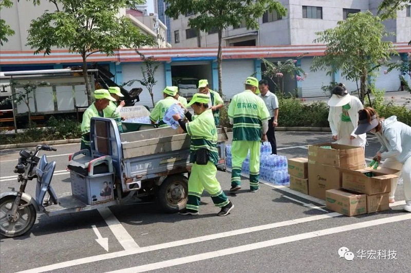 炎炎夏日,入伏后暑氣逼人。7月24日上午,江蘇華宏科技股份有限公司事業(yè)部總經(jīng)理胡品龍攜子公司江蘇華宏環(huán)保裝備有限公司負(fù)責(zé)人卞劍慰問(wèn)周莊鎮(zhèn)垃圾中轉(zhuǎn)站環(huán)衛(wèi)工人,為頂著高溫堅(jiān)守付出的他們送去清涼降溫禮包。收到慰問(wèn)品的環(huán)衛(wèi)工人紛紛點(diǎn)贊:“這一份清涼很貼心!”