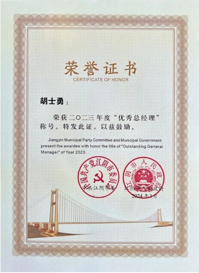 榮獲“優秀總經理”稱號