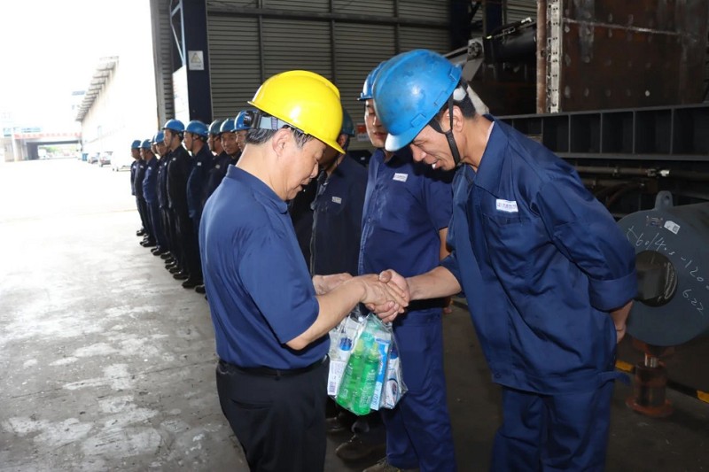 在重型車間,集團領導對員工們克服高溫、保證生產的敬業精神表示高度贊揚和衷心感謝。同時,領導們反復叮囑要注意勞逸結合,合理安排工作時間,做好防暑降溫措施,確保自身安全和健康。